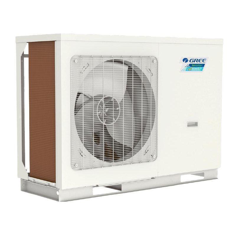 Тепловые насосы Gree GRS-CQ14Pd/NhH-M серии Versati III (сплит-системы) «воздух-вода» с инверторными компрессорами с впрыском пара предназначены для нагрева воды для горячего водоснабжения или напольного отопления, а также для отопления или охлаждения воздуха в помещении до 140 кв.м.Особенности и функции Gree GRS-CQ14Pd/NhH-M